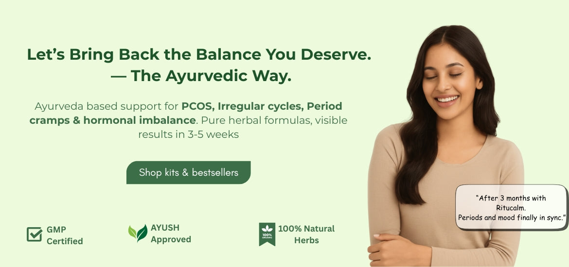 Ritucalm is an ayurvedic blend created to maintain hormonal balance, healthy menstruation, pcod/pcos symptoms & support general reproductive health of the women. It is an excellent one for those women who have hormone imbalances, irregular cycles, menstrual cramps or problems that are induced for PCOD.