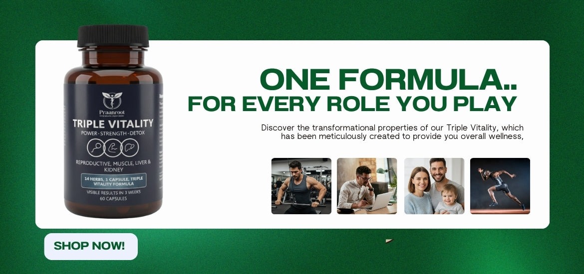 Powered by ancient Ayurvedic wisdom and modern science, Triple Vitality Capsules are specially formulated for men to enhance stamina, strength, and performance naturally.
